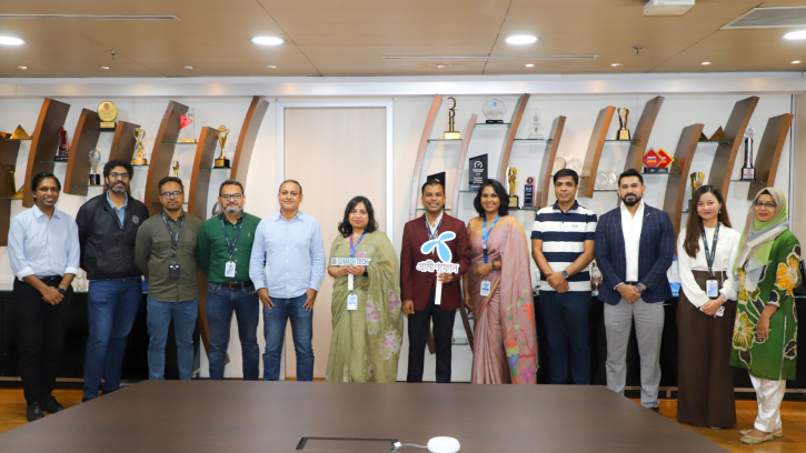 রাজধানীর বসুন্ধরায়, জিপি হাউসে সম্প্রতি চুক্তি স্বাক্ষরের পর গ্রামীণফোন ও সুমাস টেক কর্মকর্তারা। ছবি, গ্রামীণফোনের সৌজন্যে